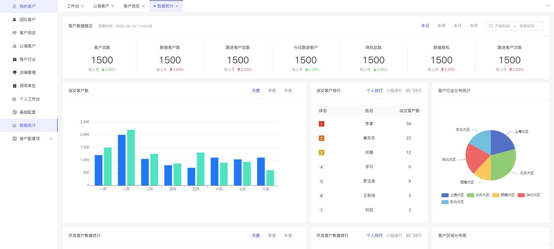 通过仪表盘、图表实时展示关键指标(如KPI达成率、客户流失率),支持自定义报表与移动端访问。